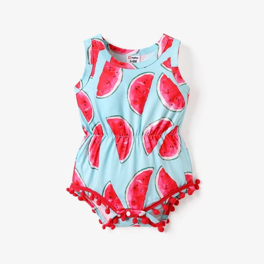 Watermelon Pom Pom Romper for Baby Girl