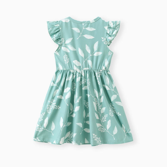 Floral Foliage Flutter Sleeve Dress For Toddler Girl