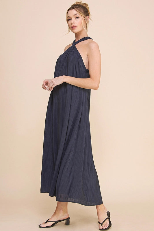 Flowy Textured Halter Neck Maxi Dress