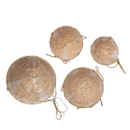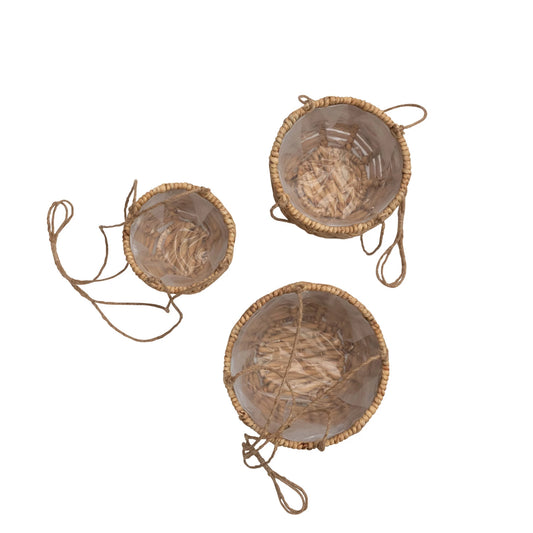 Hanging Water Hyacinth Planters with Plastic Liners and Jute Rope Hangers