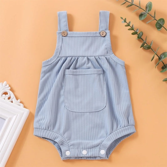 Solid Ribbed V Neck Jumpsuit For Baby Toddler