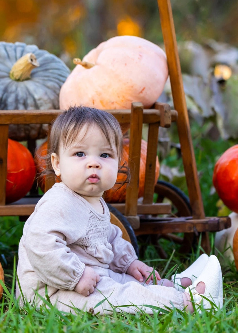 The romper features a charming empire waistline and is adorned with front smock detailing, creating a beautiful texture. The long sleeves provide extra warmth, making it ideal for cooler days.