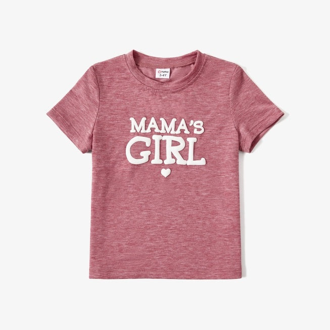 A perfect matching outfit for mom, girl, and baby girl. The pink top is printed with MAMA and heart graphic for moms, MAMA'S GIRL, and heart graphic for girls and baby girls. Made with comfortable, lightweight, and skin-friendly fabric, suitable for casual wear in any season.