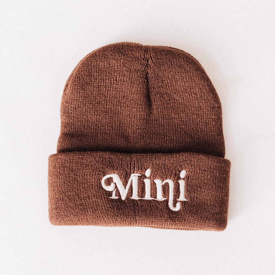 Matching mommy and me beanies are fun accessories for matching moments. These beanies are perfect for mom to match either her son or daughter. The dark brown shade is universally appealing. You will love the high quality embroidery on each hat marking you as "Mama" to your sweet little one and "Little Man" for your son or "Mini" for your either a boy or girl making these a unisex option. These matching hats are great for gifting and come in infant to adult sizing.